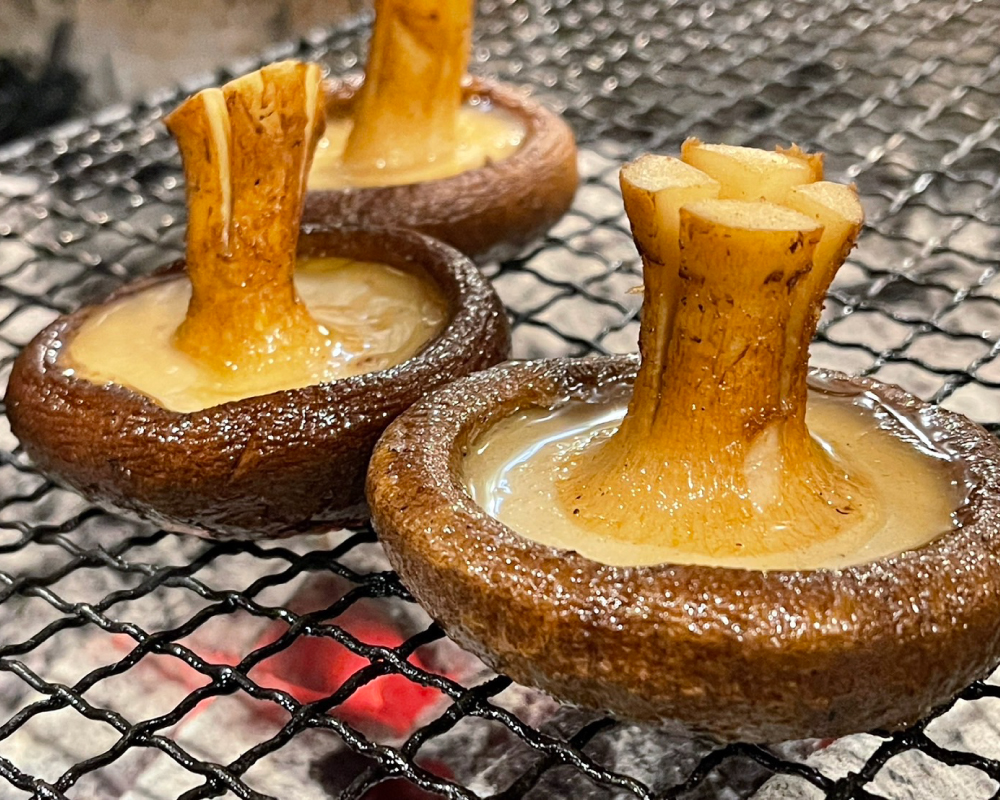 魚沼特産の「八色しいたけ」を炭火で焼き上げた一品