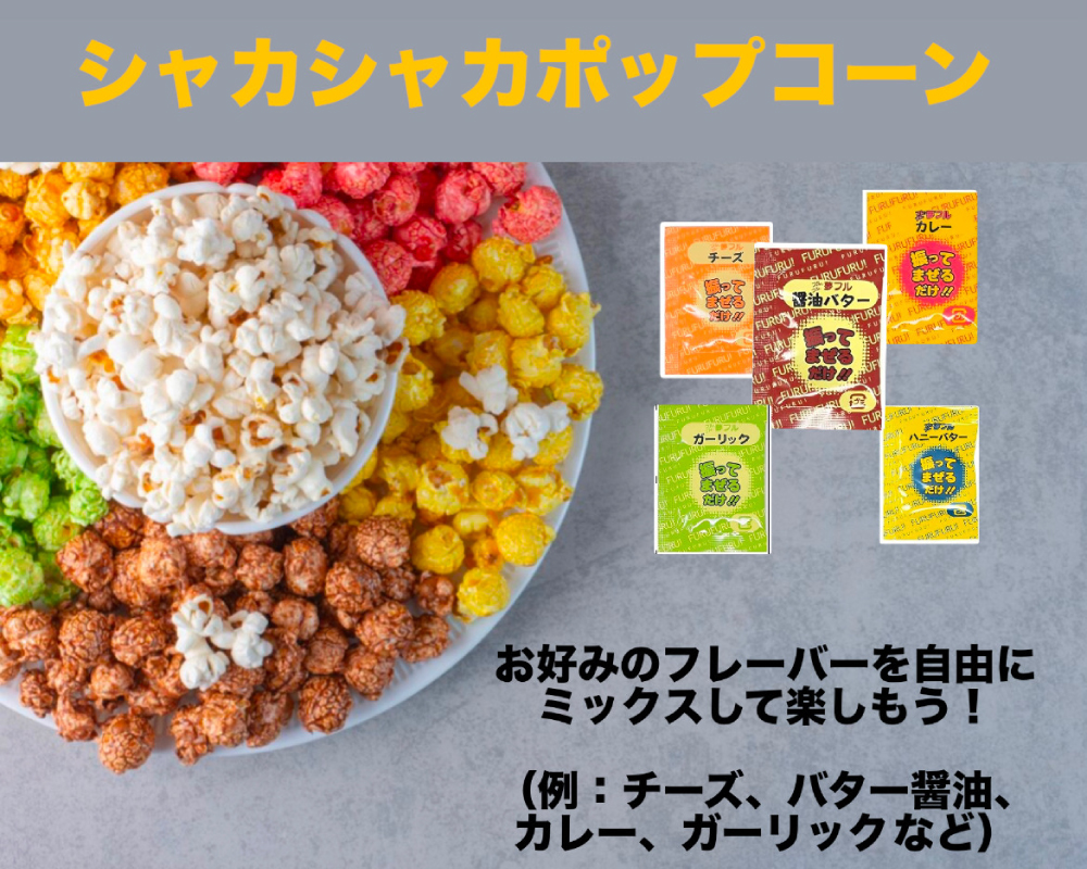 作りたて香ばしいポップコーン選べるフレーバー:カレー・チーズ・しょうゆバター
