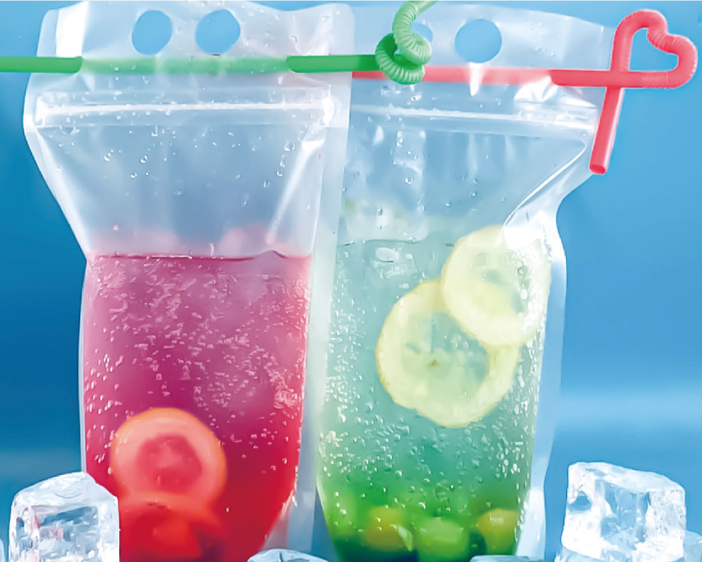 生フルーツの入った冷たいソーダドリンク