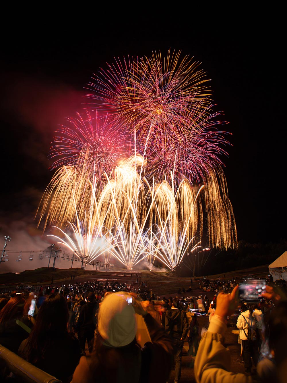 直径650mの大輪が華開く「正三尺玉」や打ち上げ幅約2kmに及ぶ「復興祈願花火フェニックス」など視界に収まりきらない大型花火の連続が魅力です。
